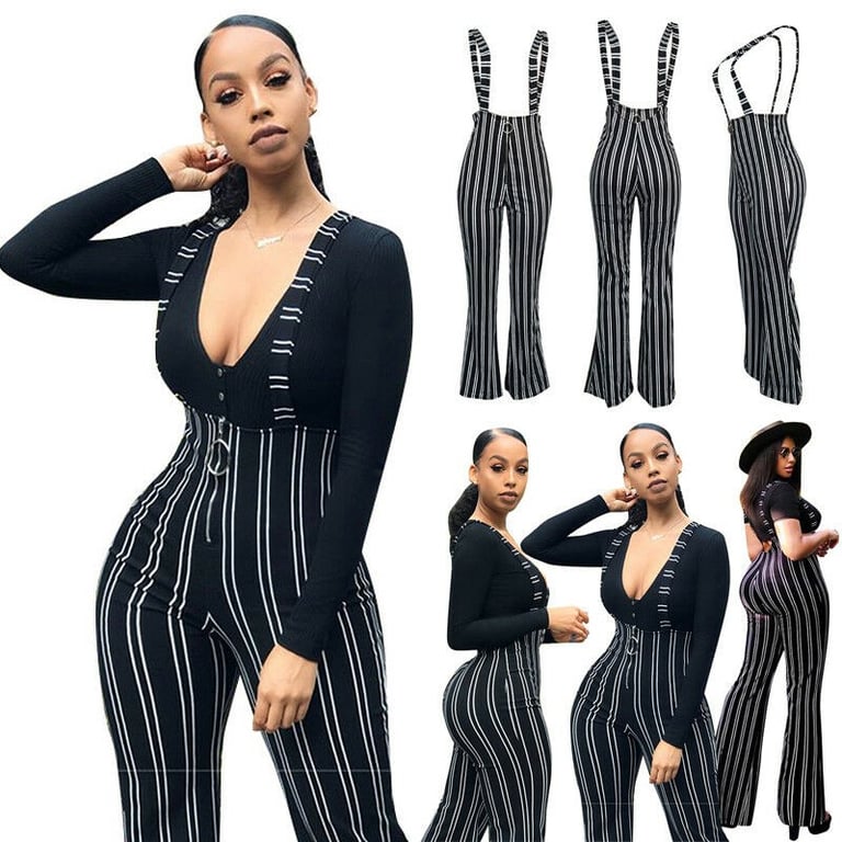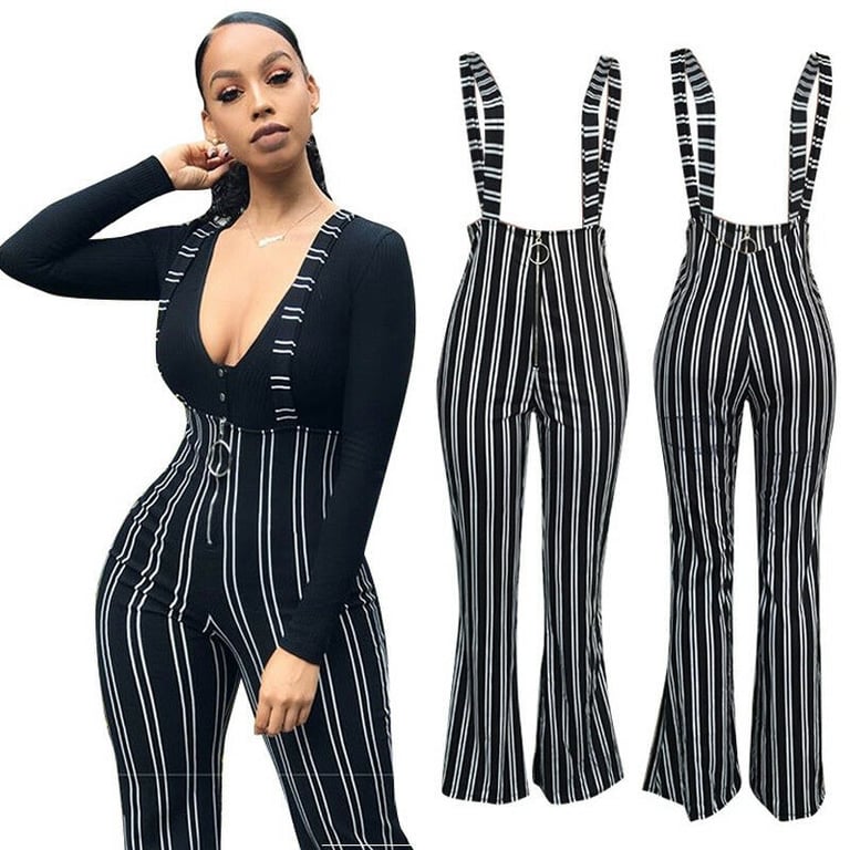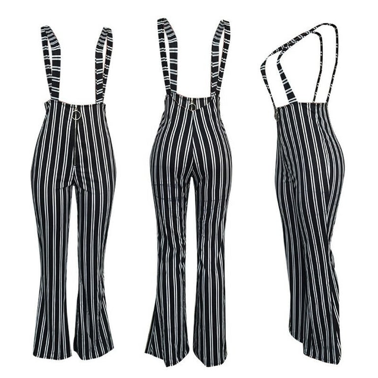 Women's Striped Trousers with Suspenders