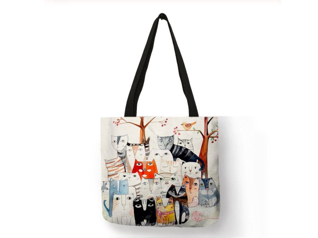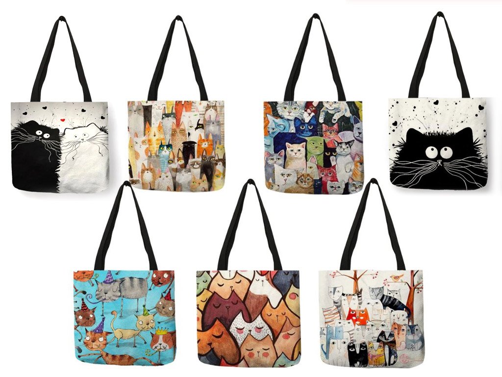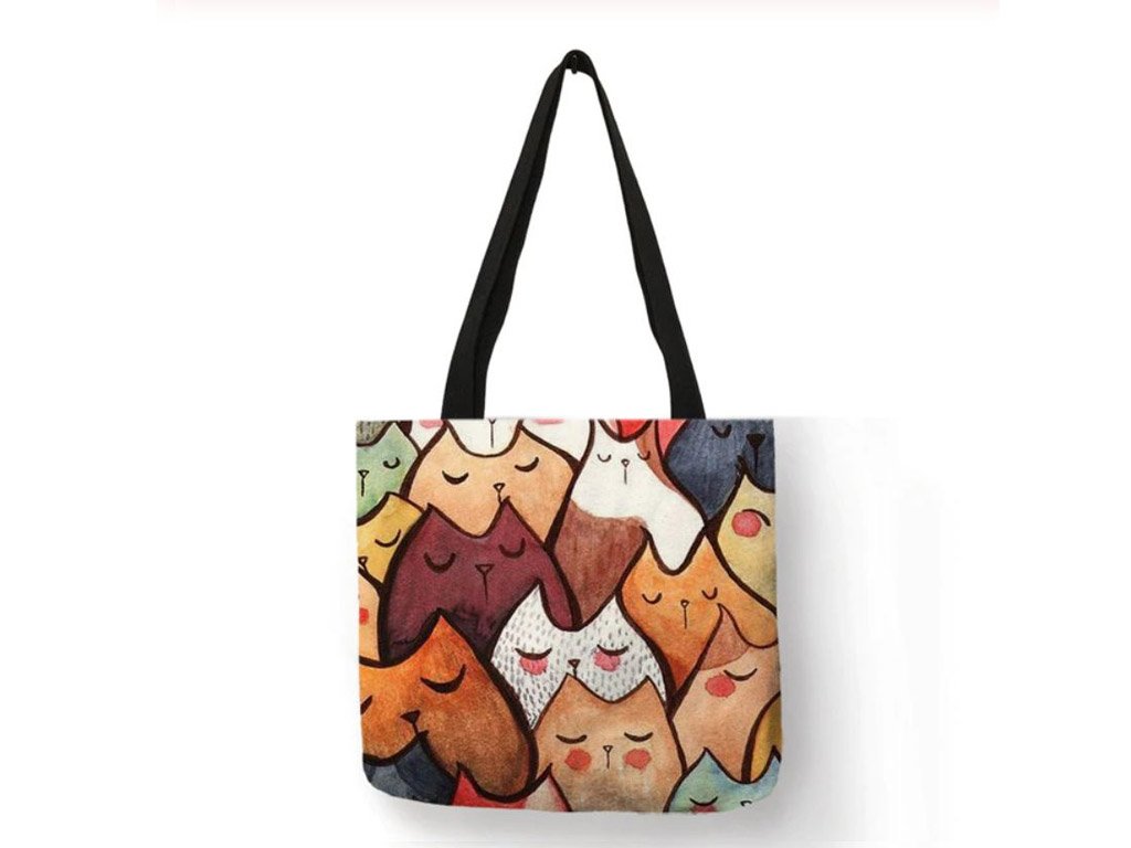 Disposable bags are a thing of the past; they don't hold much and tear easily. We present to you large canvas bags with cat motifs. You can easily fold it and practically hang it on the handle of your shopping basket while shopping.