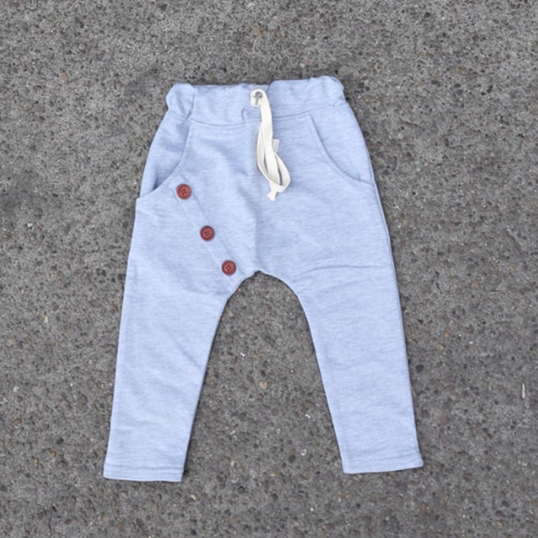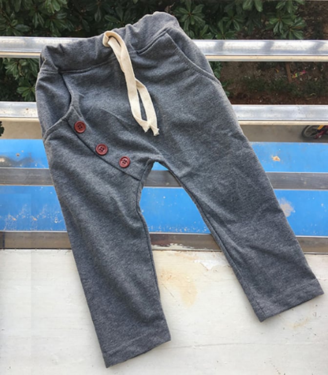 Beautiful boys' sweatpants with 2 pockets and buttons on the right pocket.