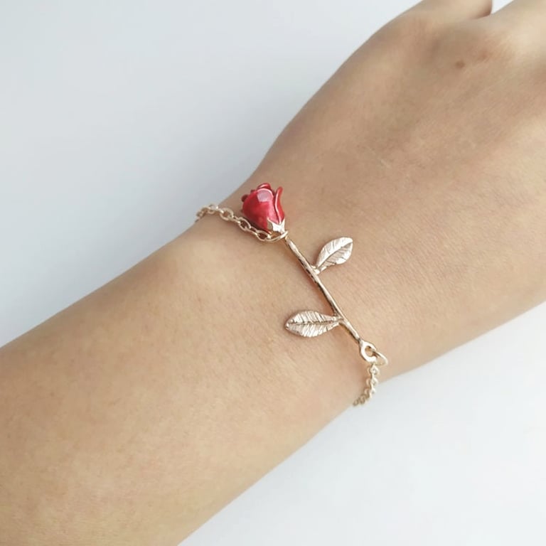 A very original delicate bracelet with a rose, suitable as a gift for your beloved partner.