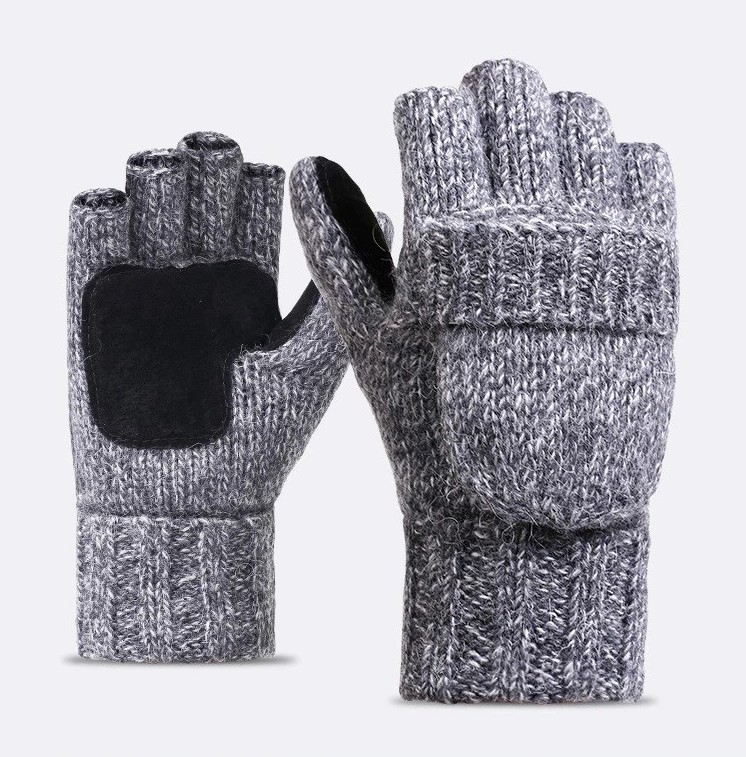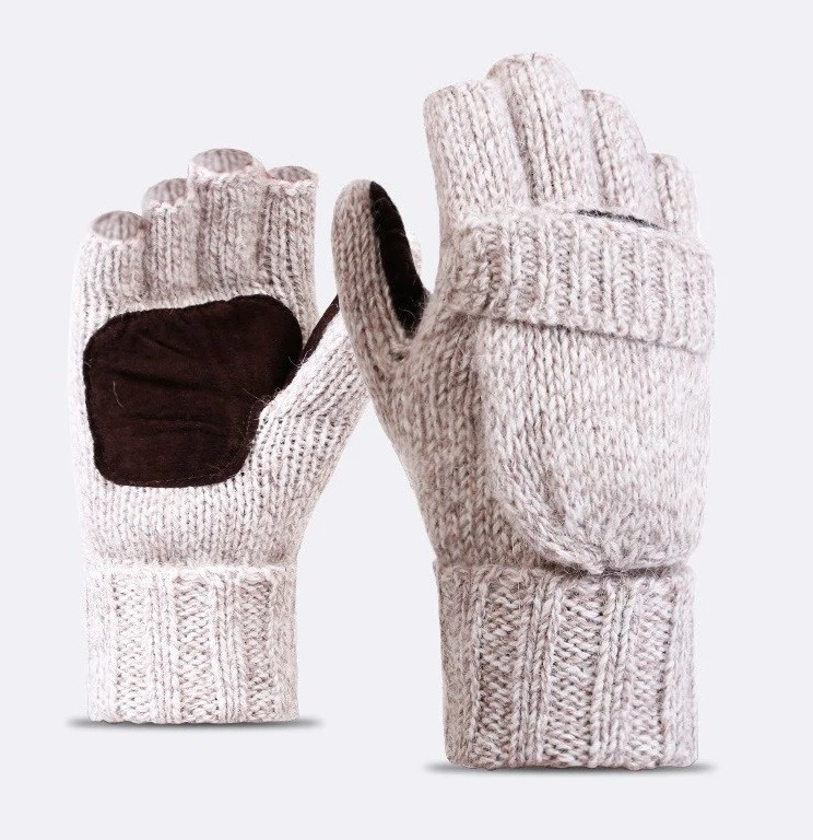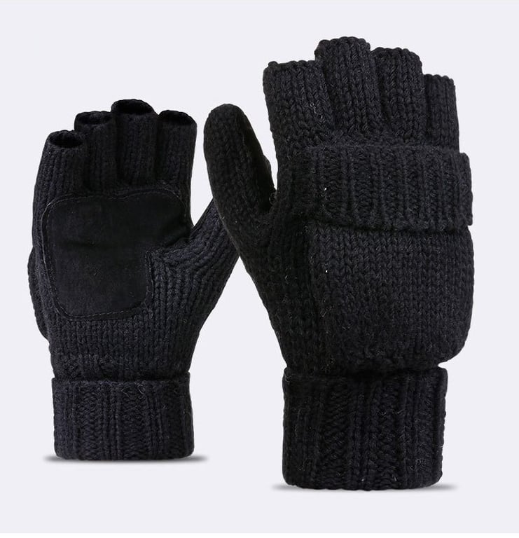 These wool gloves are 2-in-1 - you can wear them as mittens or as fingerless gloves.