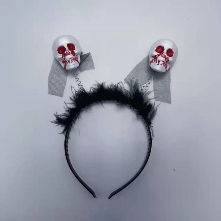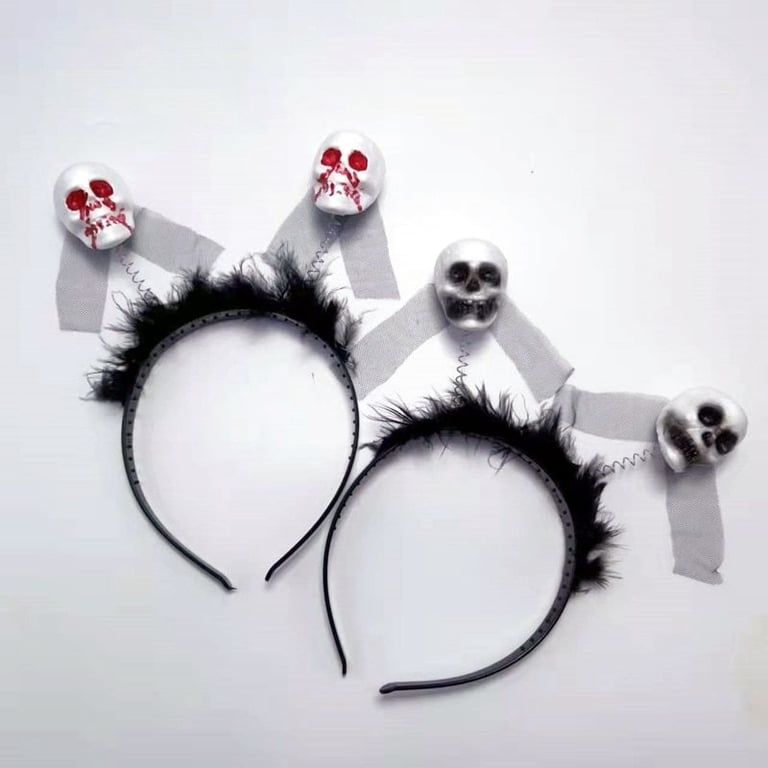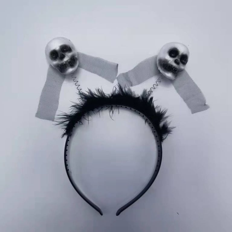 A headband with Halloween themes such as spiders, bats, and skulls.