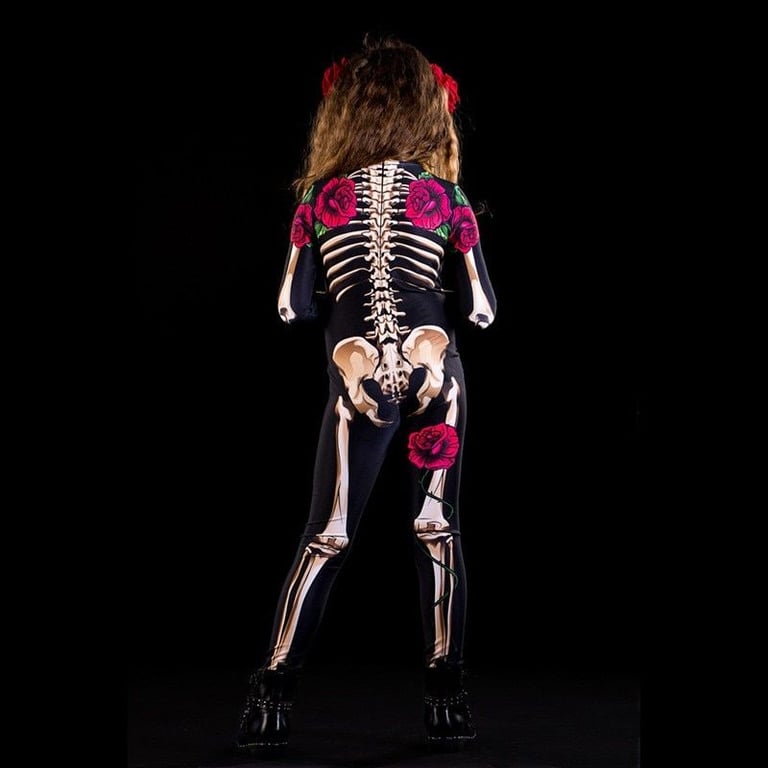 The skeleton-themed jumpsuit is suitable for both children and adults.