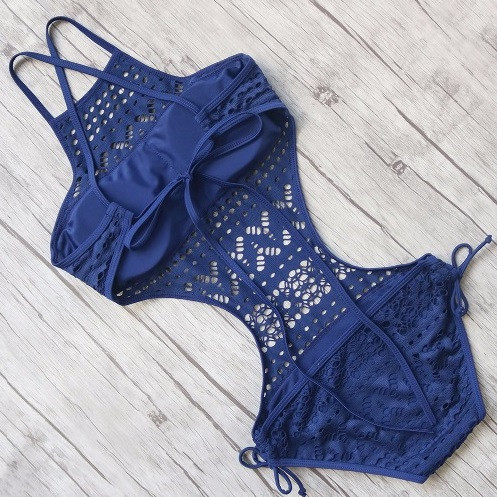 Stylish lace one-piece swimsuit Vickie – 1st variant blue