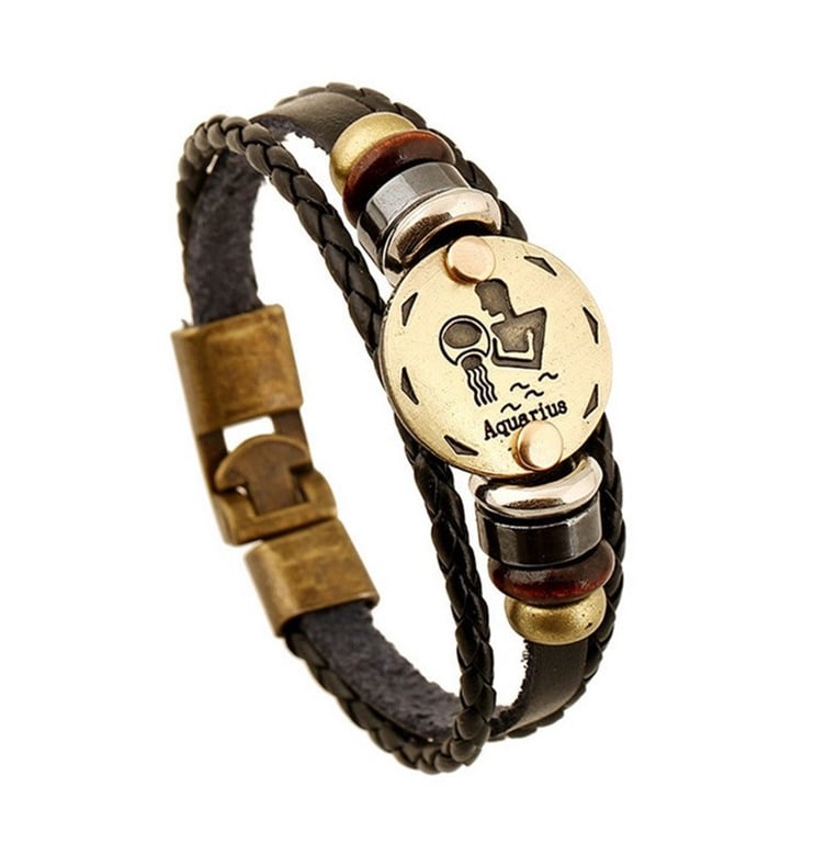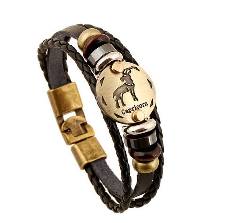 Stylish leather bracelet with metal embellishments for everyone according to their zodiac sign.