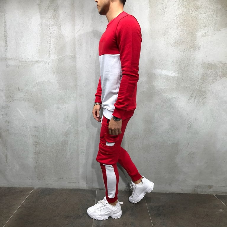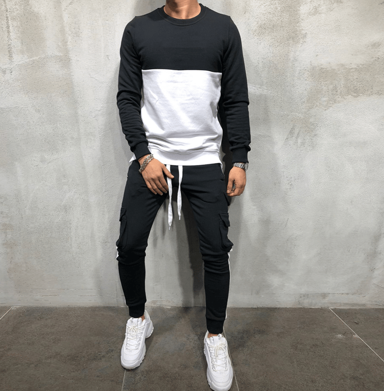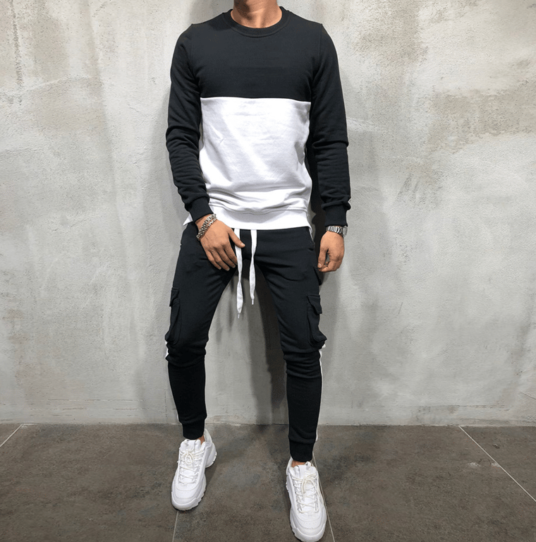 • Two-tone sports set consisting of a hoodie and joggers for men.