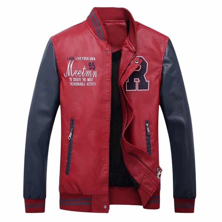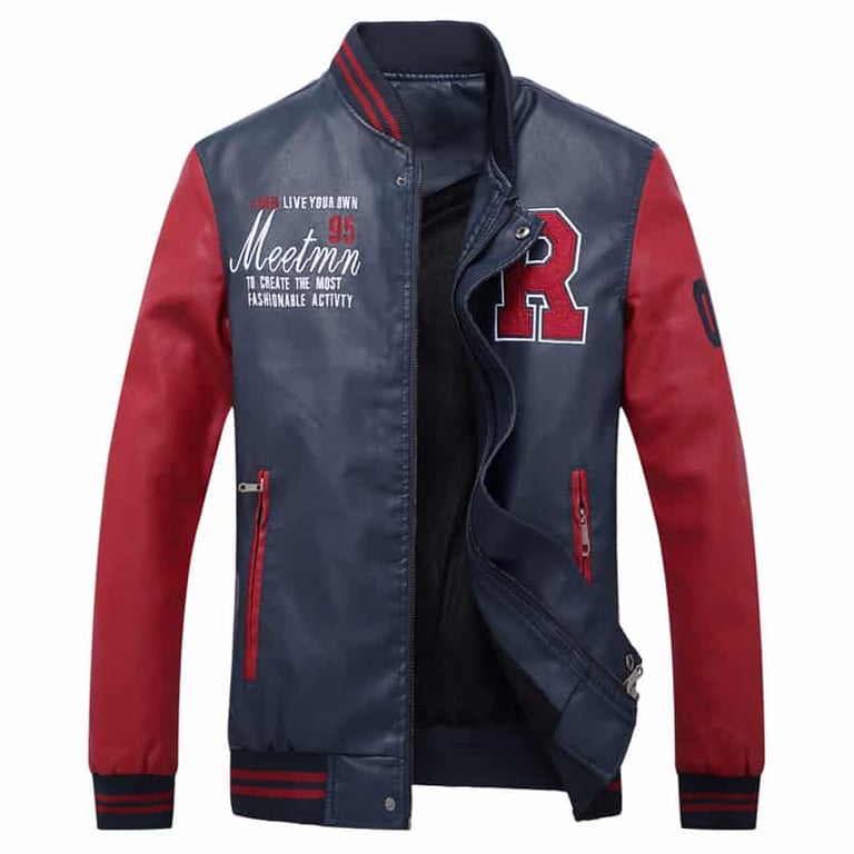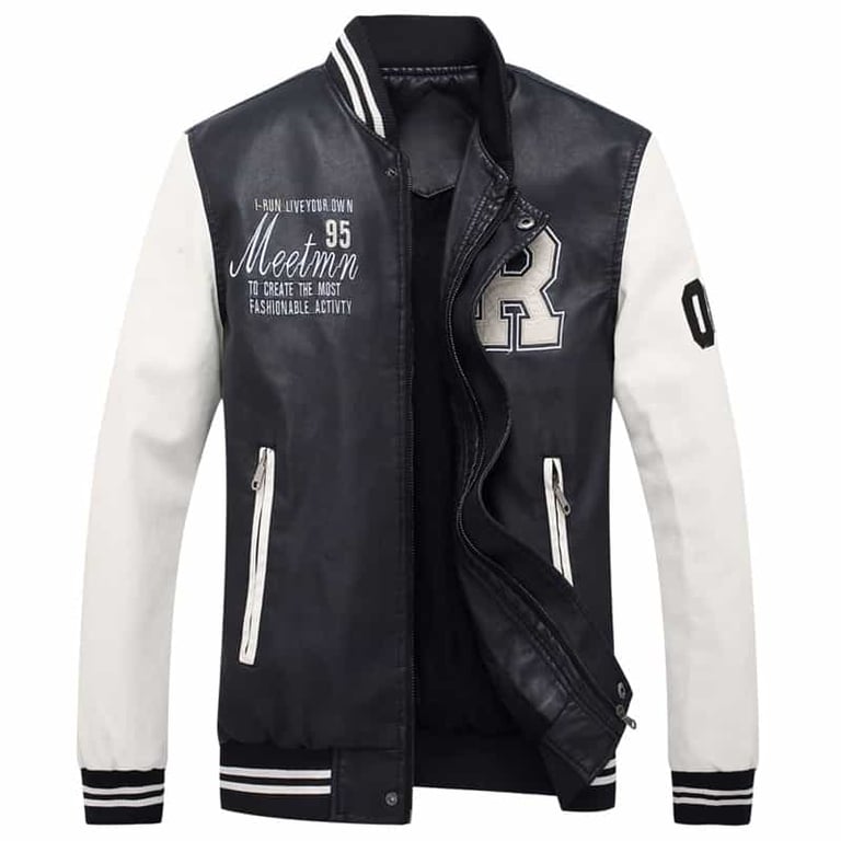 Stylish men's leather baseball jacket. Stylish men's leather baseball jacket