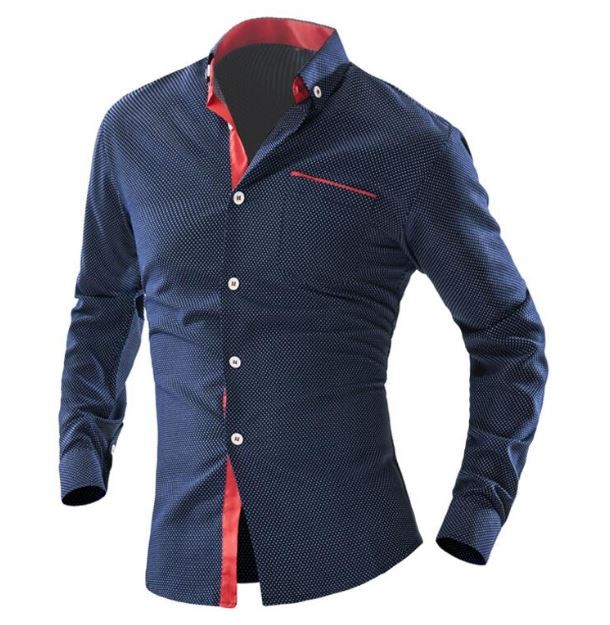 Stylish men's shirt in dark blue with red details.
