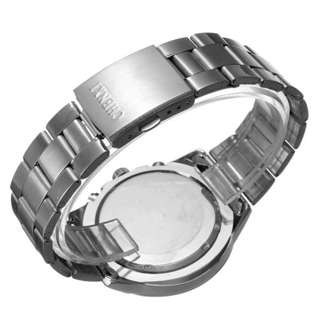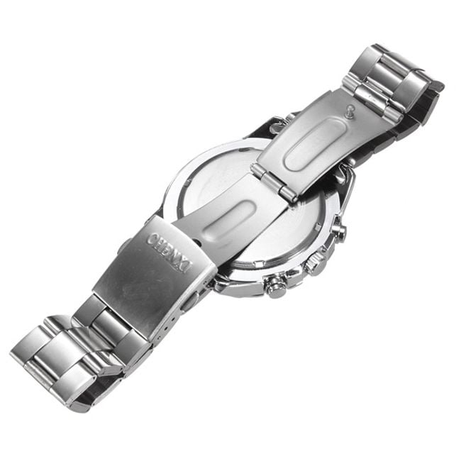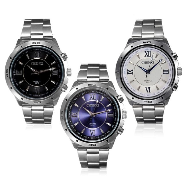 Elegant men's watches with a link strap feature a dial in blue, white, or black. This type of watch is suitable for men of all ages and for all occasions.