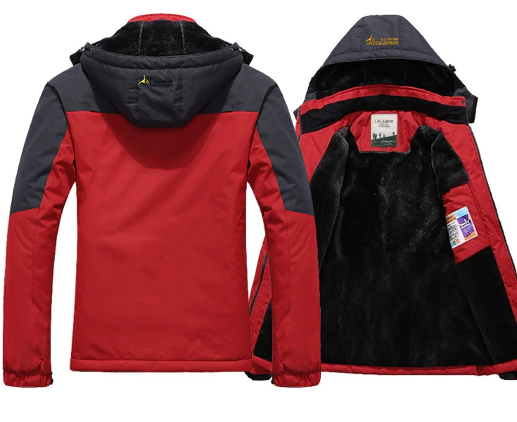 The jacket is waterproof on the outside and will keep you warm with soft cotton on the inside.