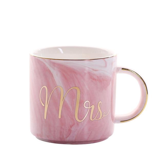 Stylish marble-style mug with the inscription Mr. and Mrs. Available in multiple colours.
