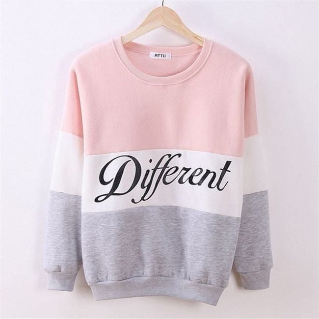 Classic women's sweatshirt in an interesting multicoloured design. The cut is loose-fitting, making it flattering for both slim and curvier figures. On the front, you'll find an English inscription that you'll appreciate, especially if you value uniqueness and individuality. You can choose from several colour options and sizes.