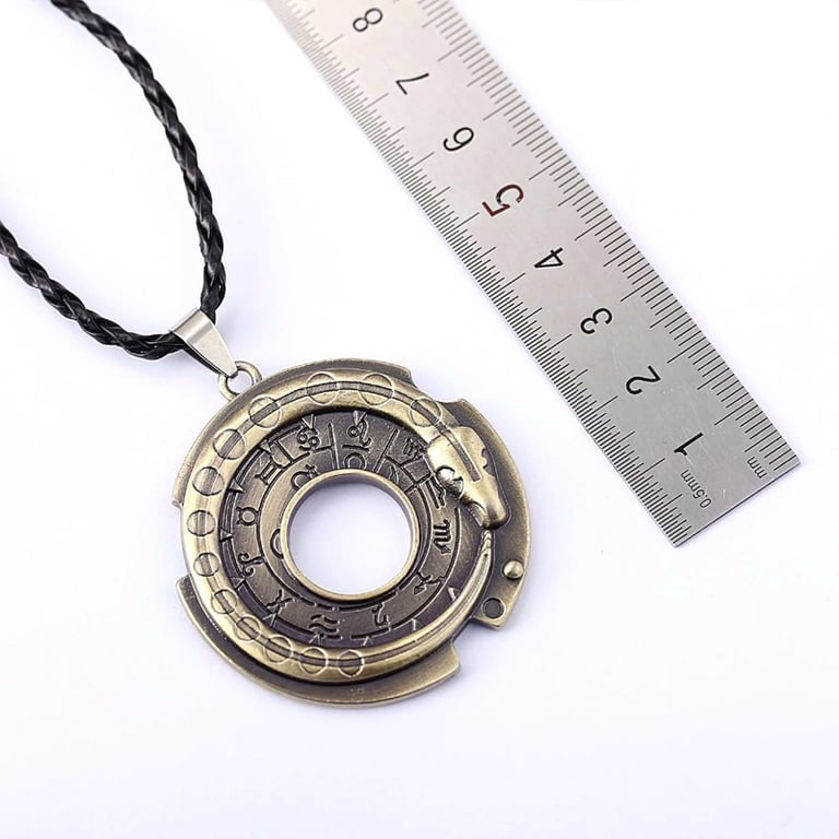 Pendant with an attractive zodiac motif in the grip of a snake. The metal pendant is approximately 5 cm in size and the length of the cord chain is 40 cm.