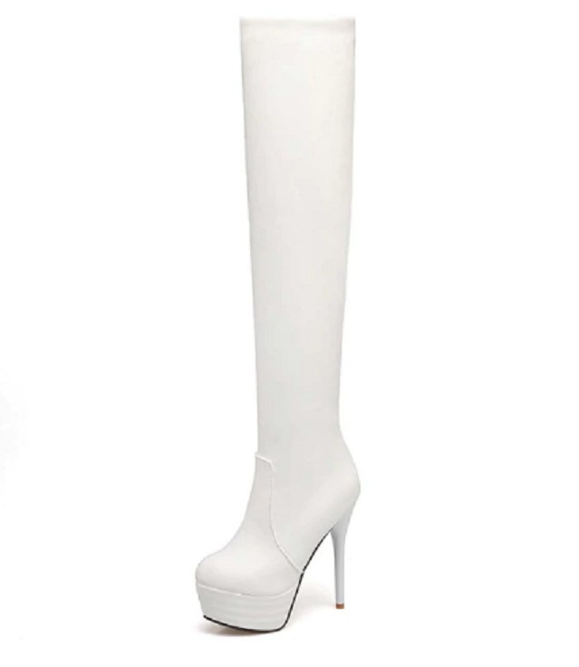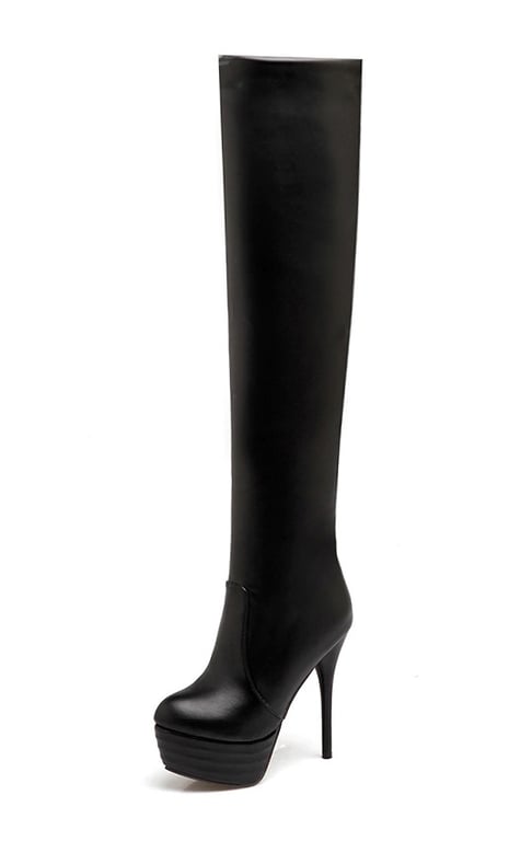 Every woman will love these stylish boots. The boots are knee-high and have a heel.