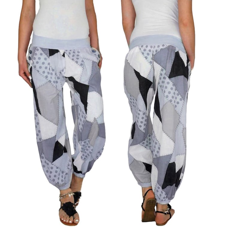 Stylish joggers, not just for home use. Perfect for exercising of any kind. They are very modern with their patchwork pattern.