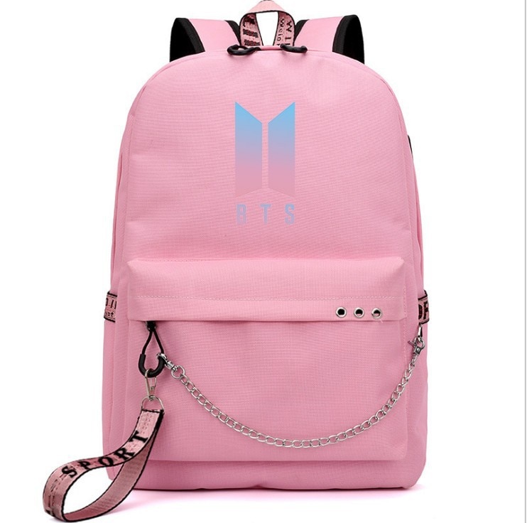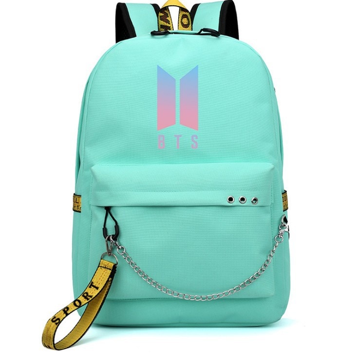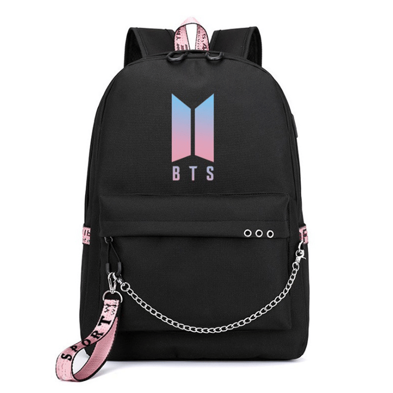 A beautiful unisex BTS backpack with a laptop pocket, small pockets, and a padded back for comfortable wear.