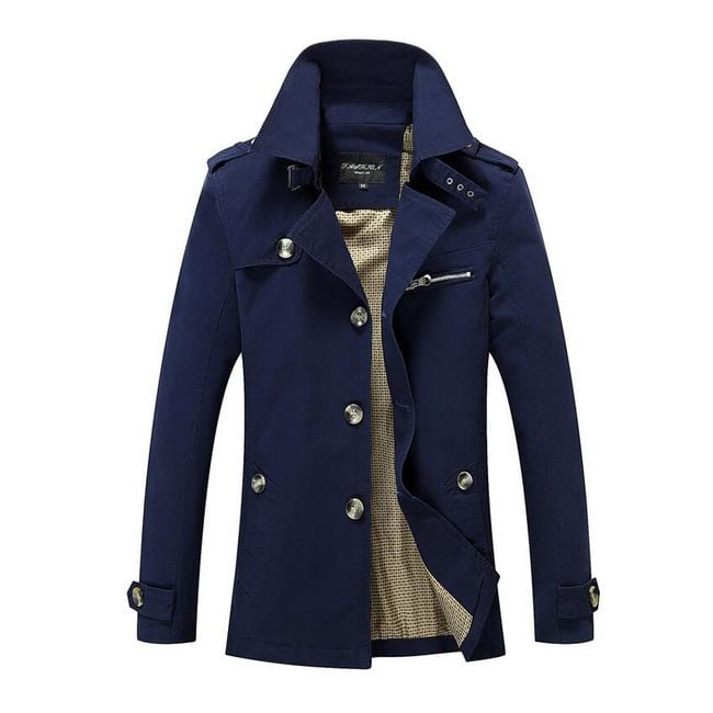 With this masculine yet elegant coat, the transition from winter to summer will be much more pleasant. The coat features tasteful buttons and a buckle at the neck. The zippered chest pocket allows you to keep your essentials secure. Inside the coat is a soft lining.