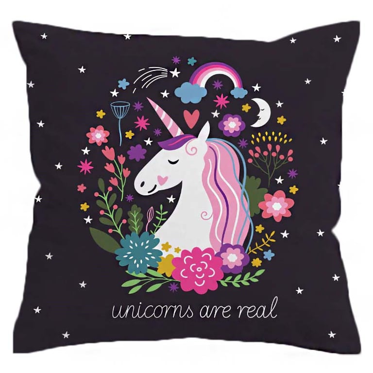 A stylish cushion cover that easily enhances your interior, as unicorns are popular and the design is pleasantly colour-coordinated.