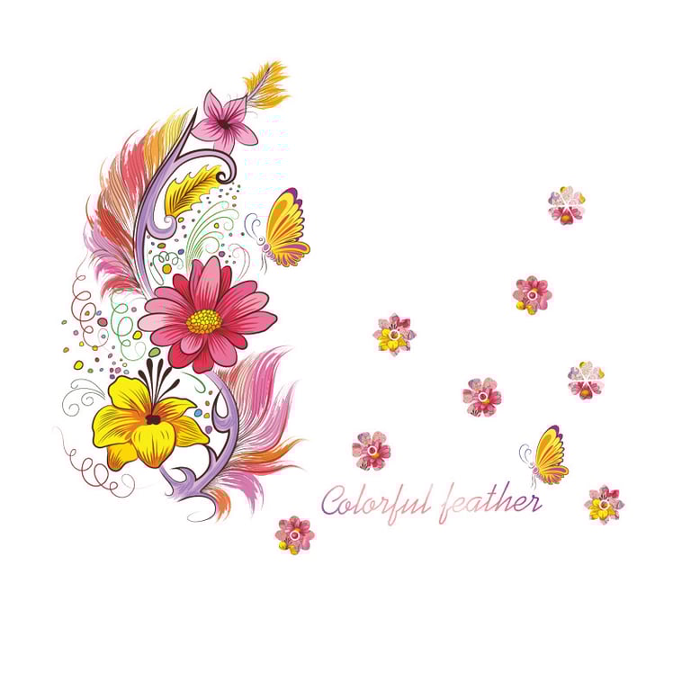 Stylish wall decoration in the form of a playful feather motif with flowers.