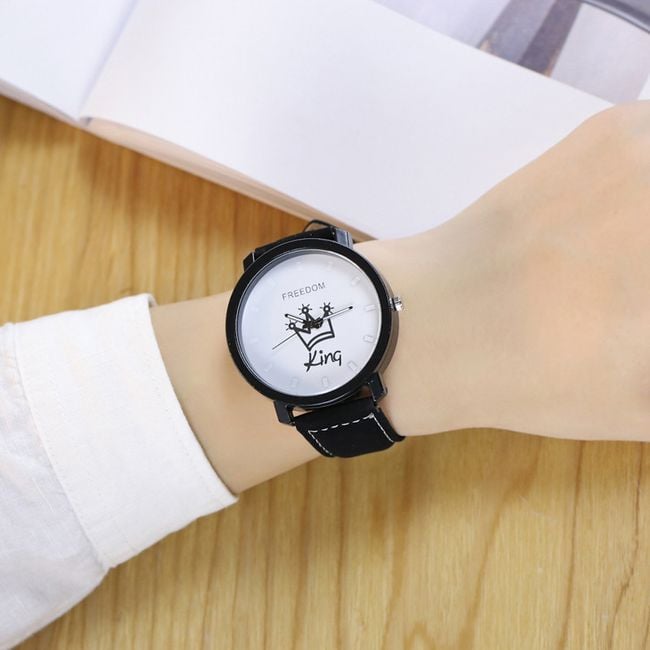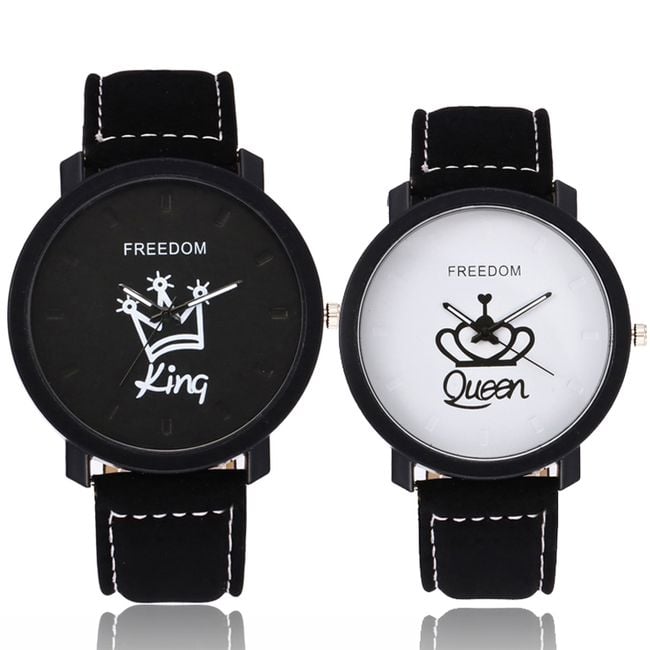 Stylish couple watches with inscriptions: “Queen” or “King”. Available in 8 different variants.