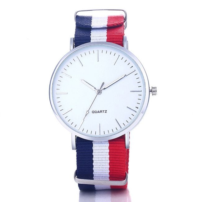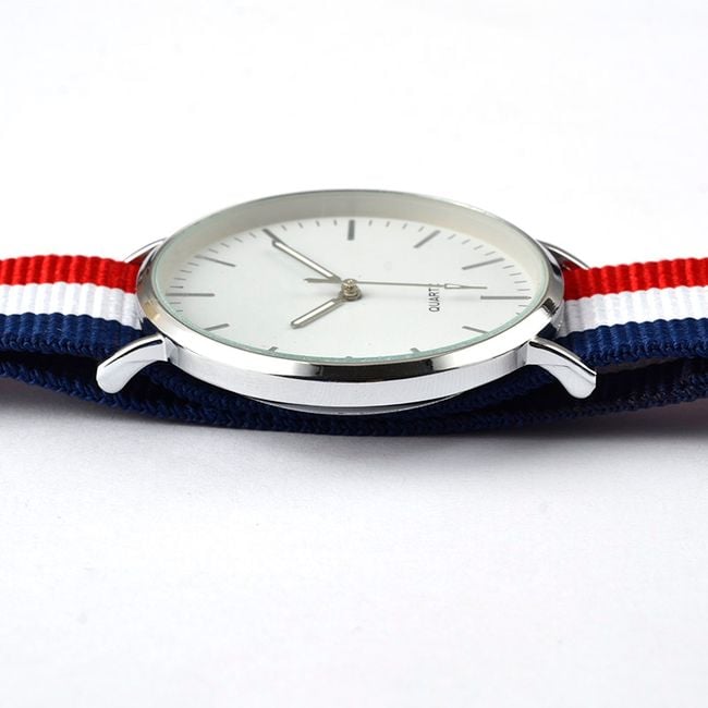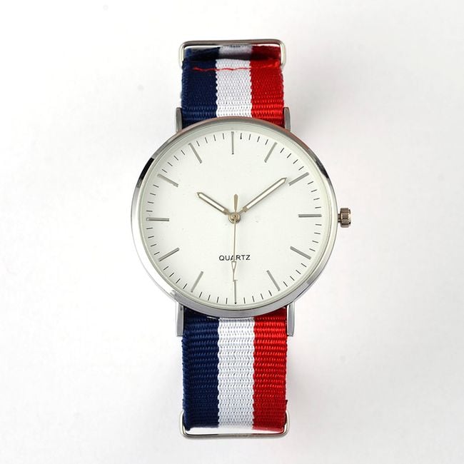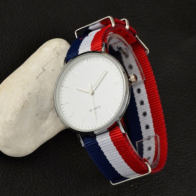 Original women's watch with a large dial features a wide multicoloured strap. Available in 7 colour variants.