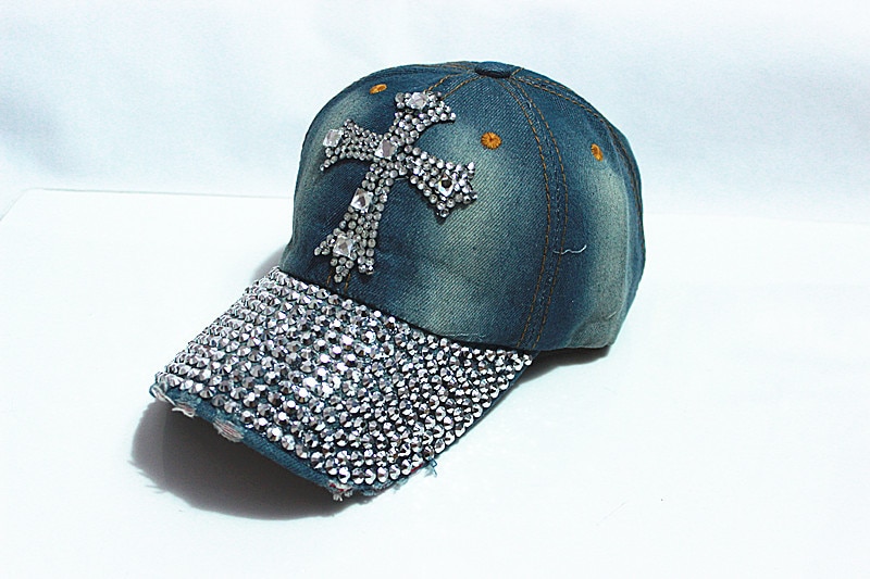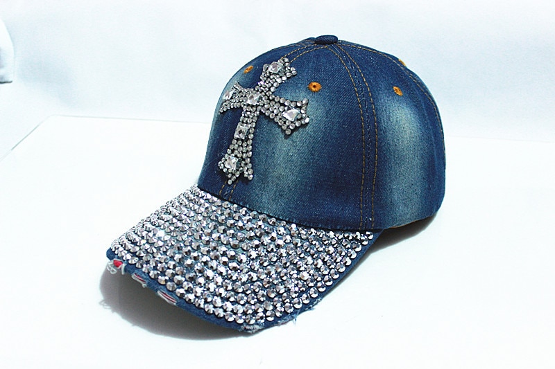 Stylish women's cap adorned with rhinestones.