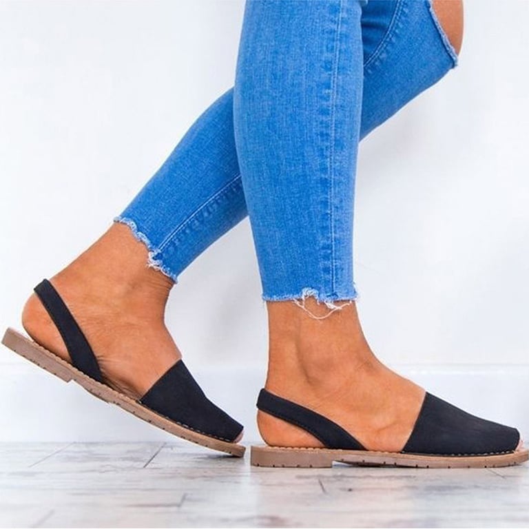 Women's summer sandals with an open toe and a strap over the heel. Flat low sole. Available in multiple colour options.