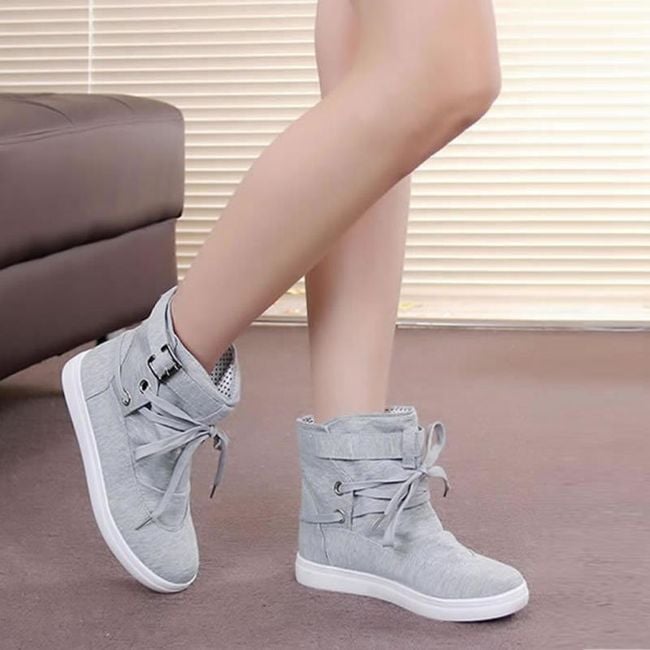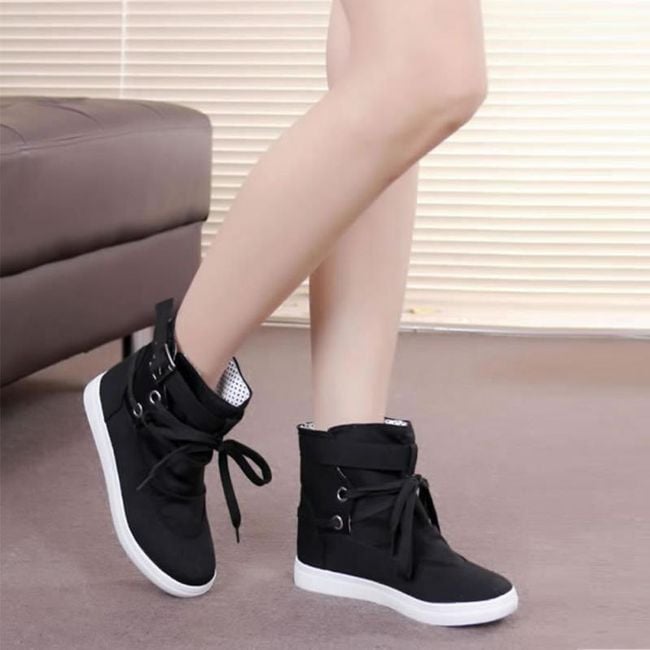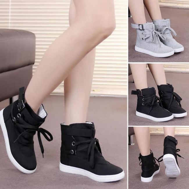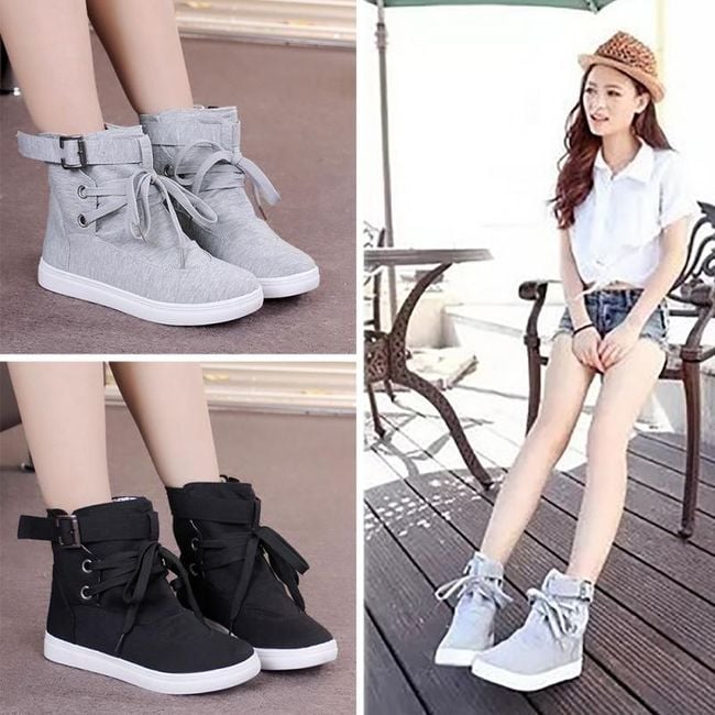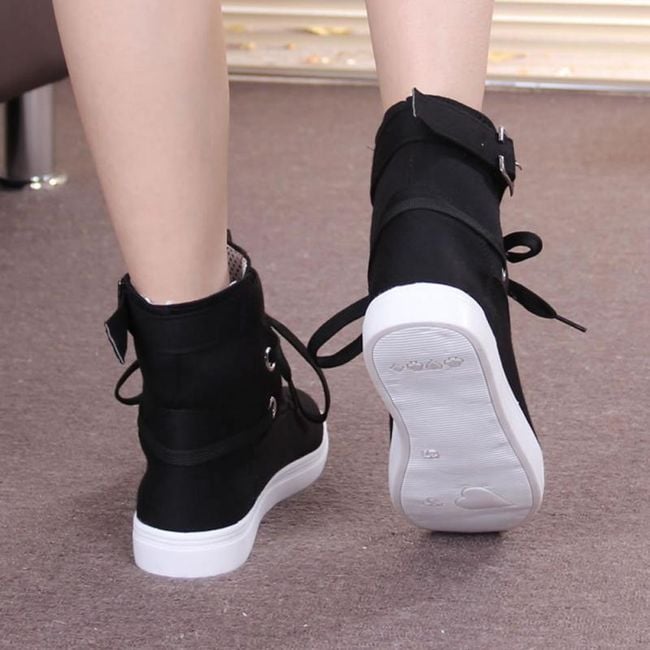 The shoes are ankle boots and have a higher sole.
