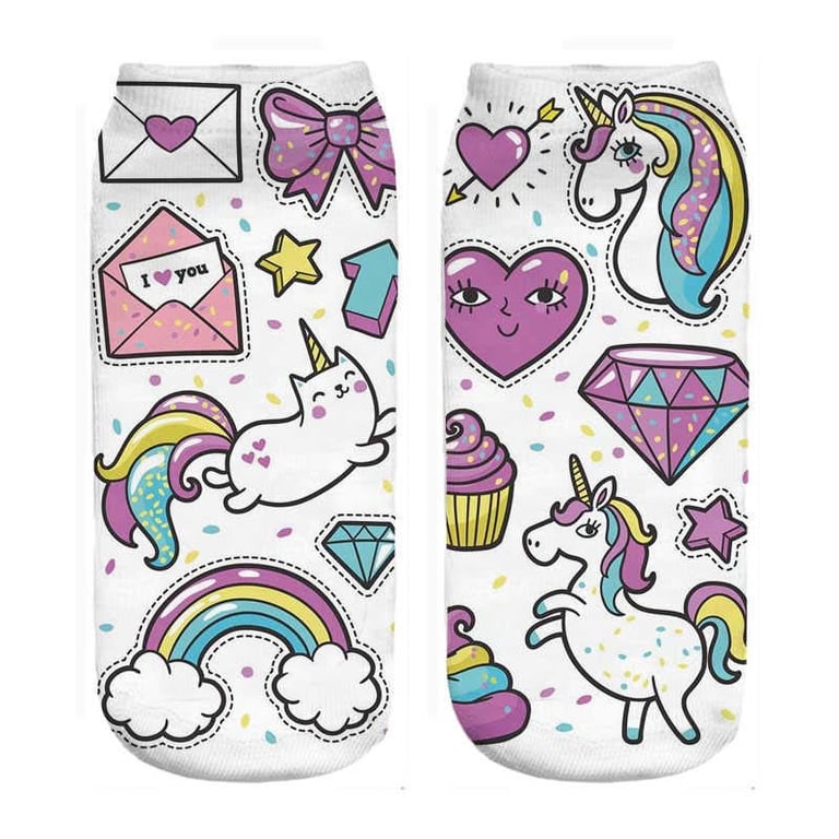 Stylish socks featuring unicorn motifs that are decorated and cheerful.