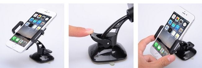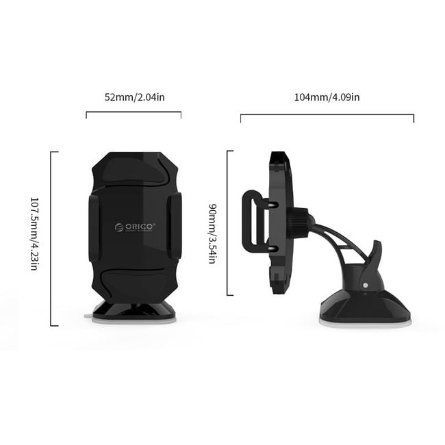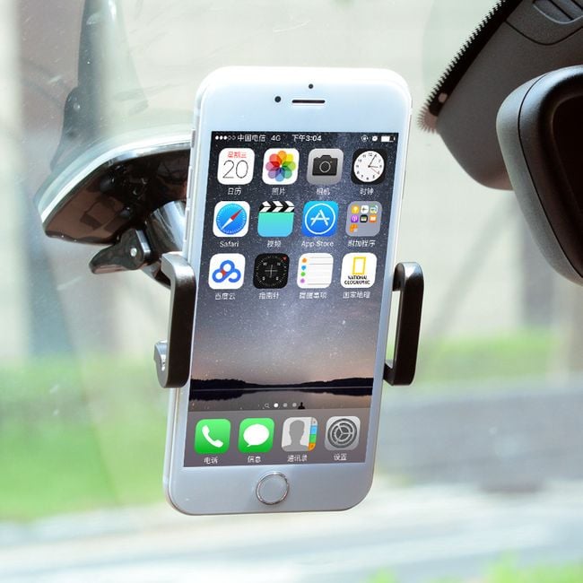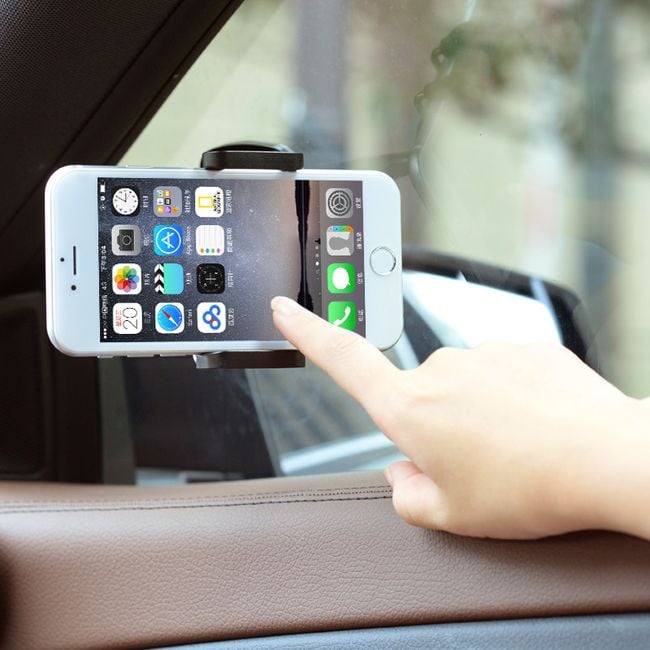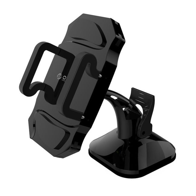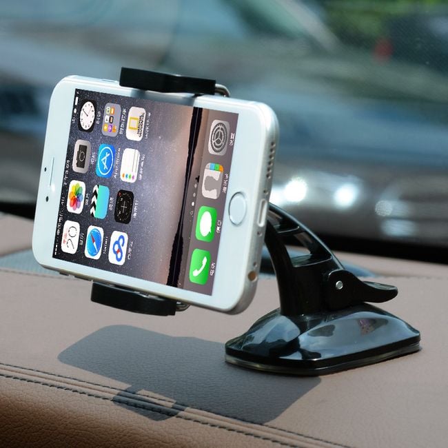 The suction cup holder can be attached to the car's windscreen or dashboard. It can hold a navigation device, phone, or tablet. The dimensions of compatible devices can be found below on the product description page. Easy and stable attachment to the surface. Available in black.
