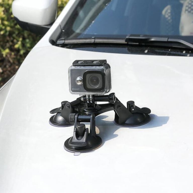 Holder with practical suction cups and tripod mount for an outdoor camera. Capture stunning shots from an unusual angle.