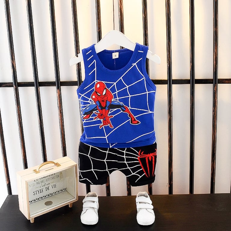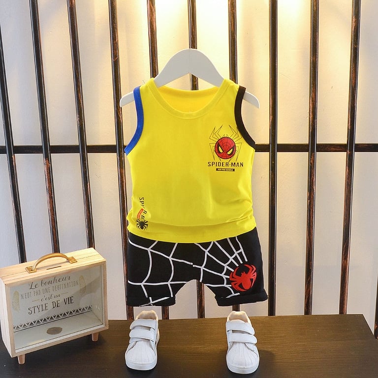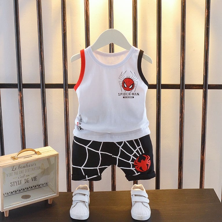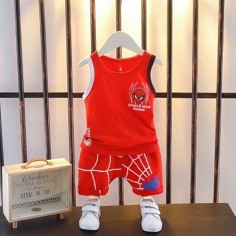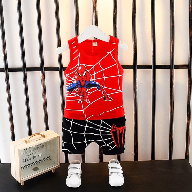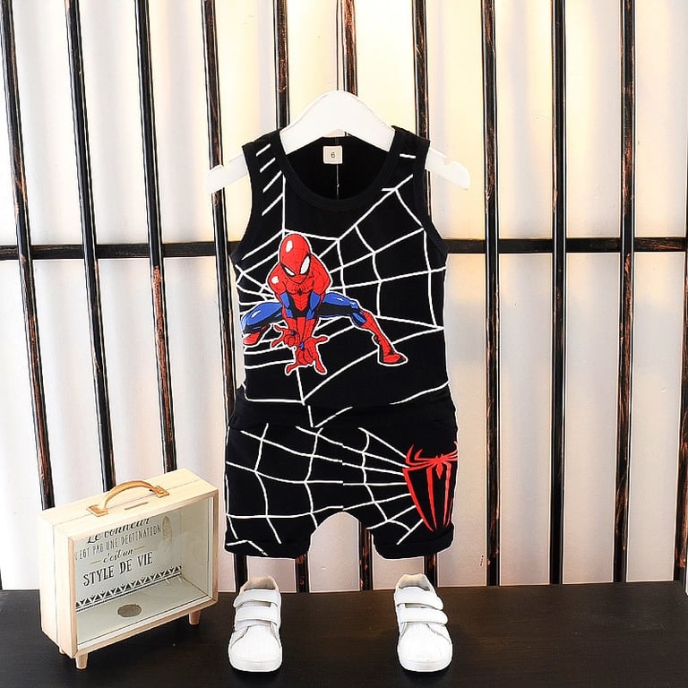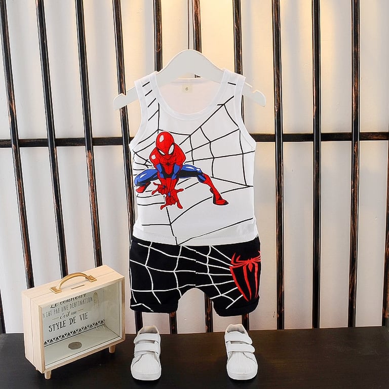 A stylish tank top and shorts set for the little ones featuring a print of their favourite comic hero.