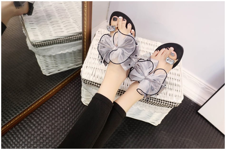 Summer Cute Non-Slip Sandals with a Large Tulle Bow