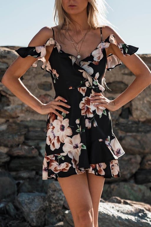 Romantic floral pattern, ruffled skirt.