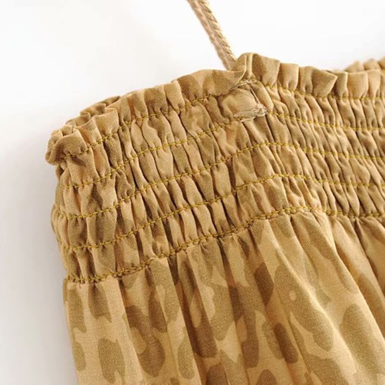 Spaghetti tie straps, leopard print.
