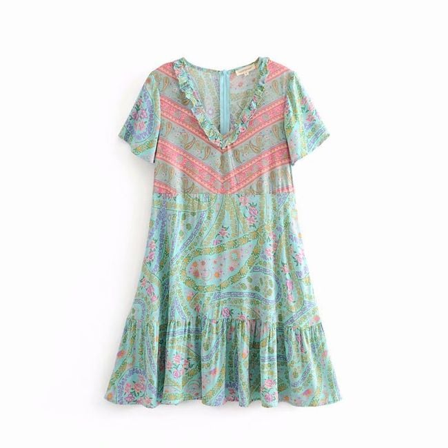 You will fall in love with the summer dress with patterns in pastel colours at first sight! The measurements provided are for the product, not the body.