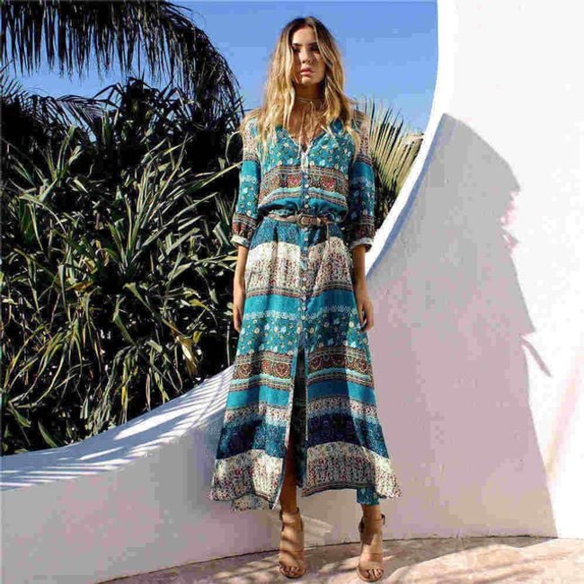 Bohemian patterns are simply in fashion! They should not be missing from the wardrobe of any stylish woman. You can choose from long and short dresses in the collection. The loose fit discreetly hides any extra pounds. You will find more pattern variations and five sizes in the selection. Measurements for both short and long dresses can be found in the table below on the page.