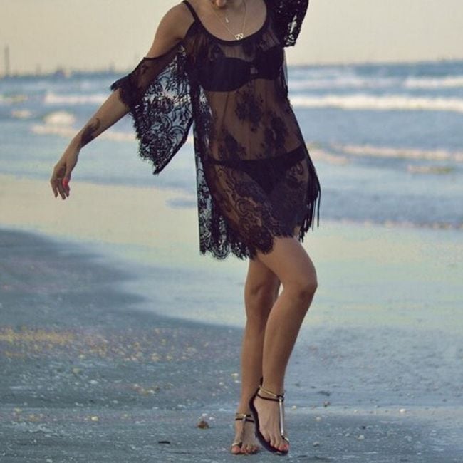 With this cover-up over your swimwear, you will definitely exude originality this summer. Thanks to the precise lace, the dress looks very luxurious. It is a must-have in your wardrobe. Are you going on holiday by the sea? Then these dresses are a must! However, the cover-up is also suitable for parties or the city. If you wear a simple basic dress and put this cover-up over it, you will instantly have an original piece. It hides much more than meets the eye!