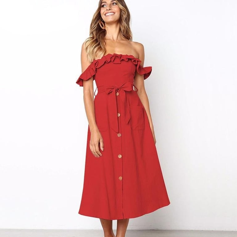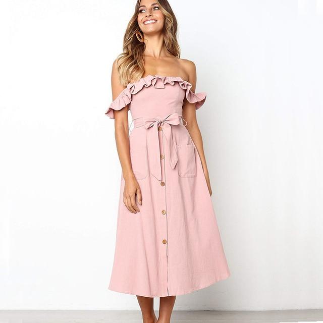 Summer maxi dress with ruffled sleeves. Available in several colours.