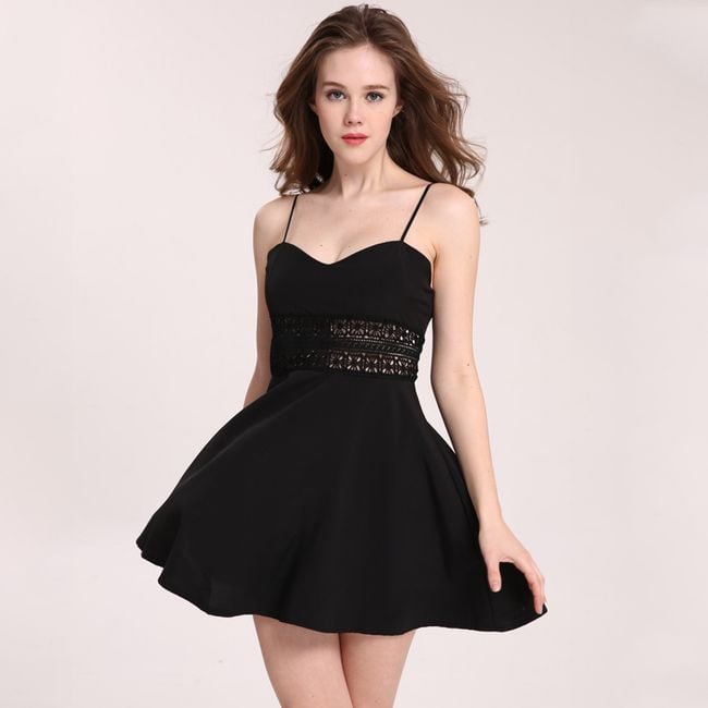 The sexy mini dress features a lace strip at the waist, allowing the skin to show through. This makes it look very original and sexy.