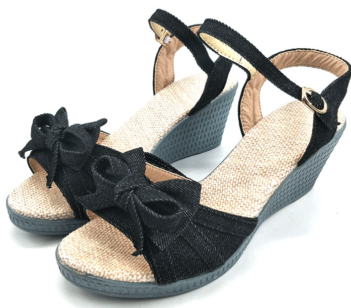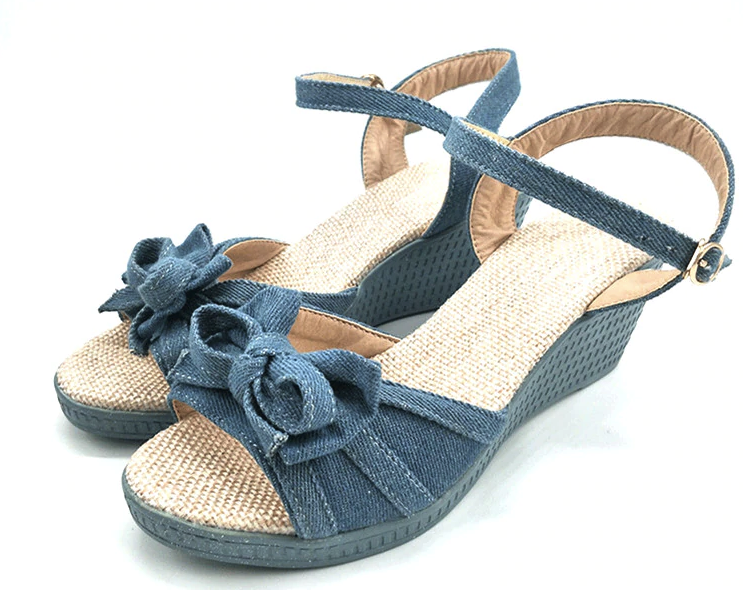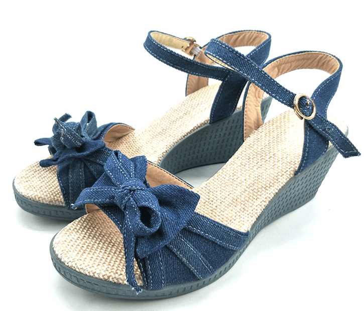 Summer sandals with a denim bow