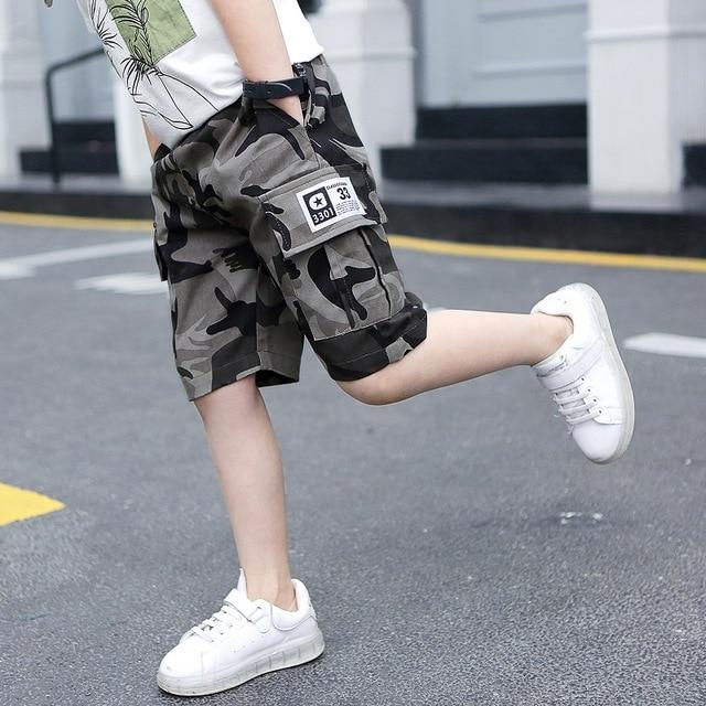 Cotton shorts with pockets for boys. Available in black or a patterned design.