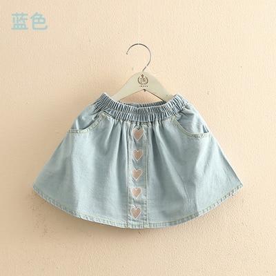Summer denim skirt for girls. The skirt is available in blue or white, adorned with delicate hearts.