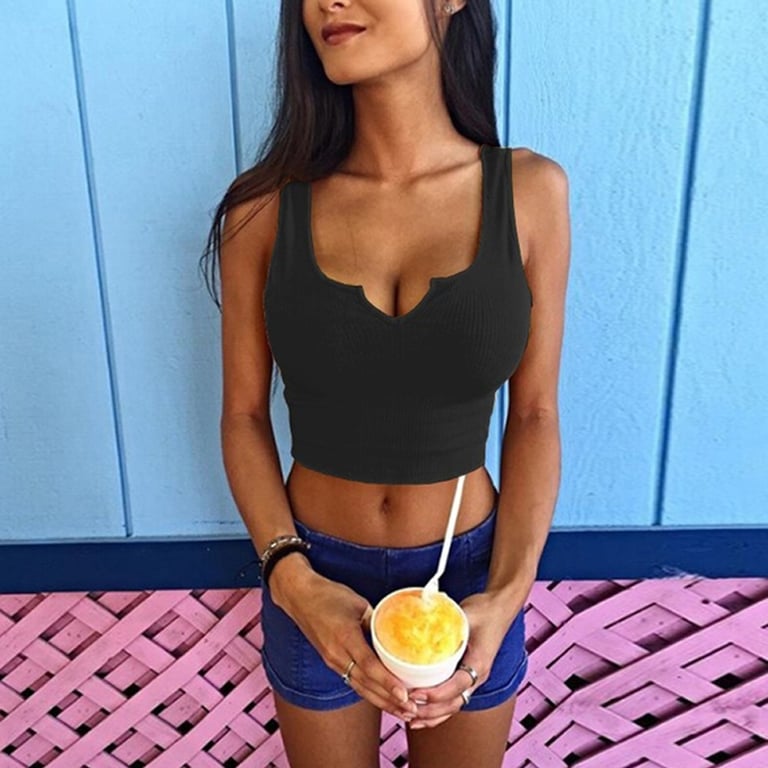 Women's summer crop top with a V-neck. It has wide straps and is available in several nice colours.