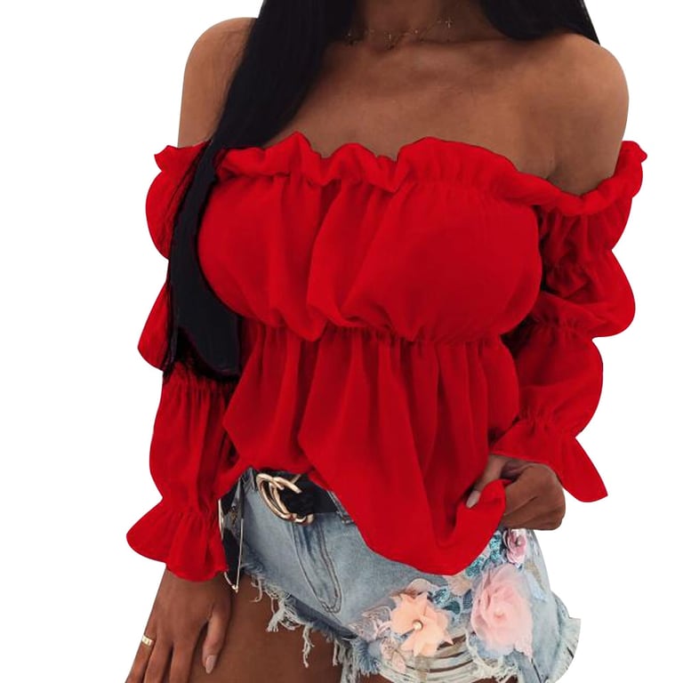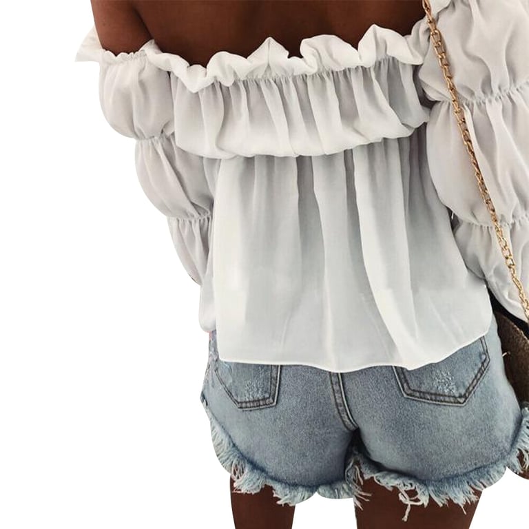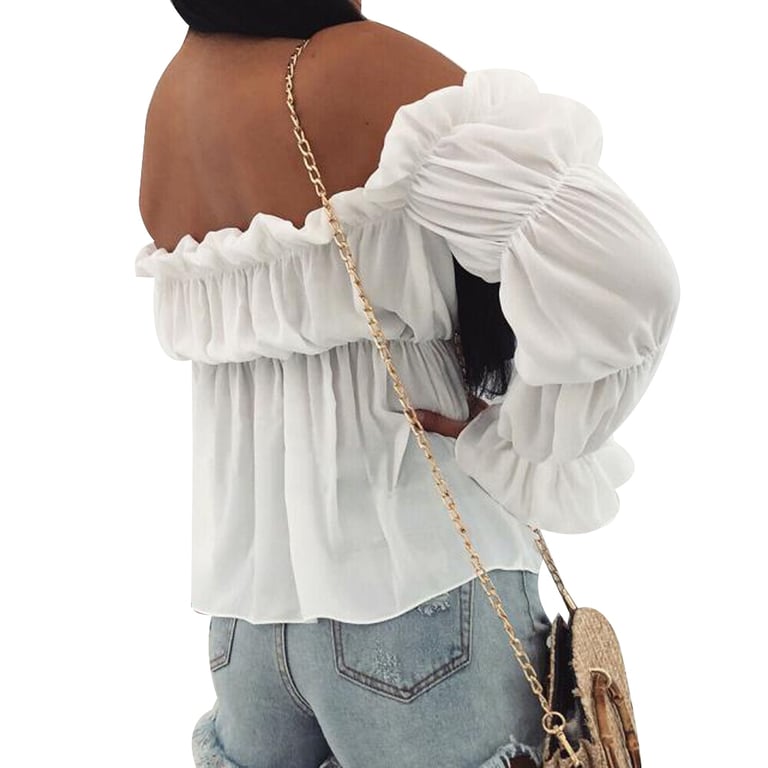 Summer Women's Blouse with Exposed Shoulders