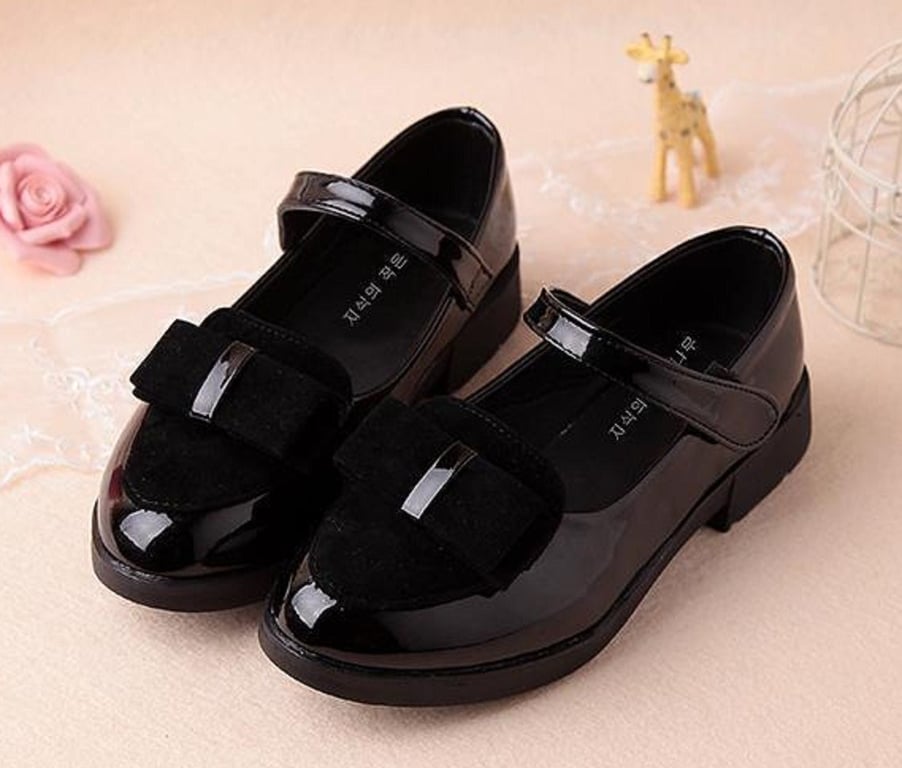 The ballerinas are adorned with a bow and fasten with Velcro.