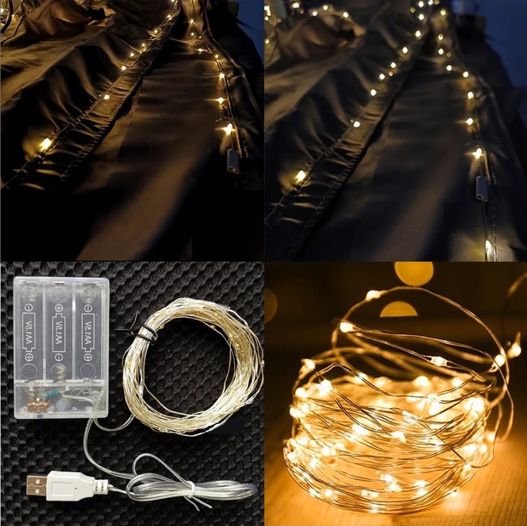 Package contents: 1x tarp, 1x light wire, 3x fastening rope