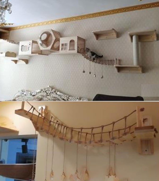 Hanging rope bridge for cats
