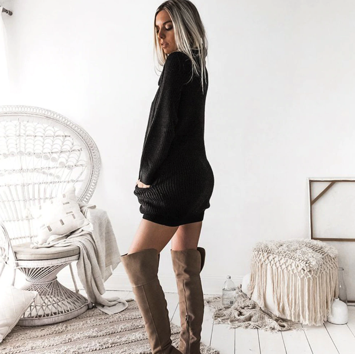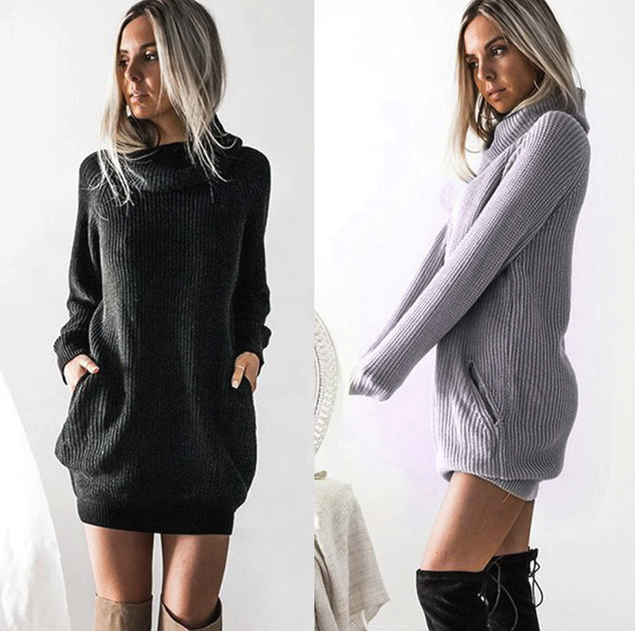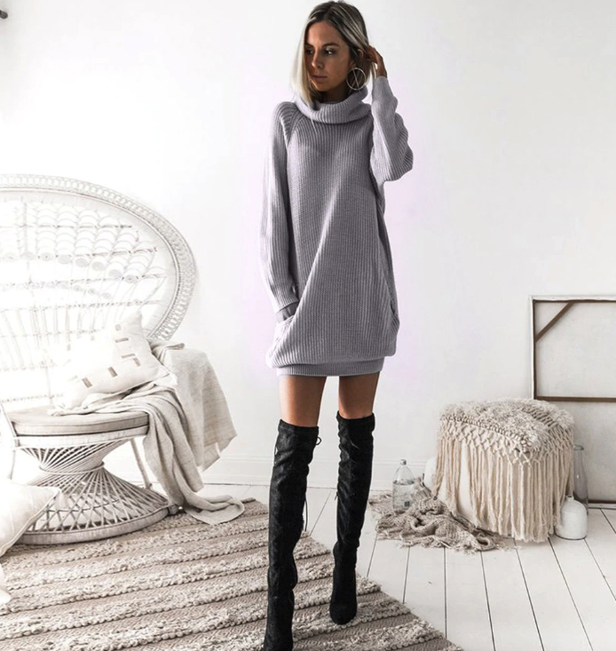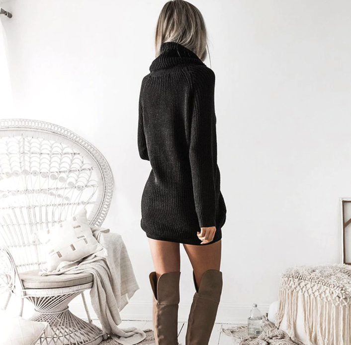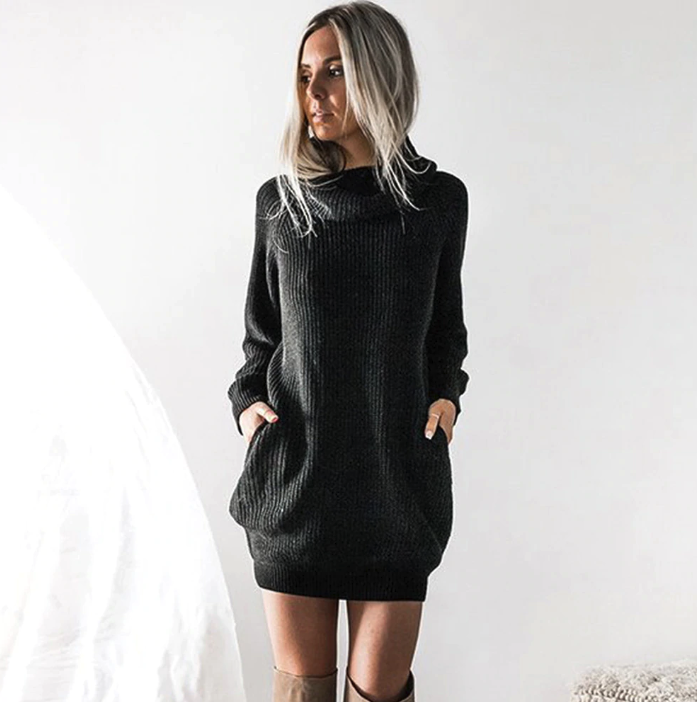 Sweater dress with a collar