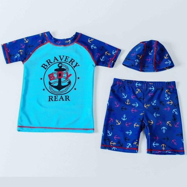 Swimwear for boys in various summer designs. The swimwear is made from polyester.